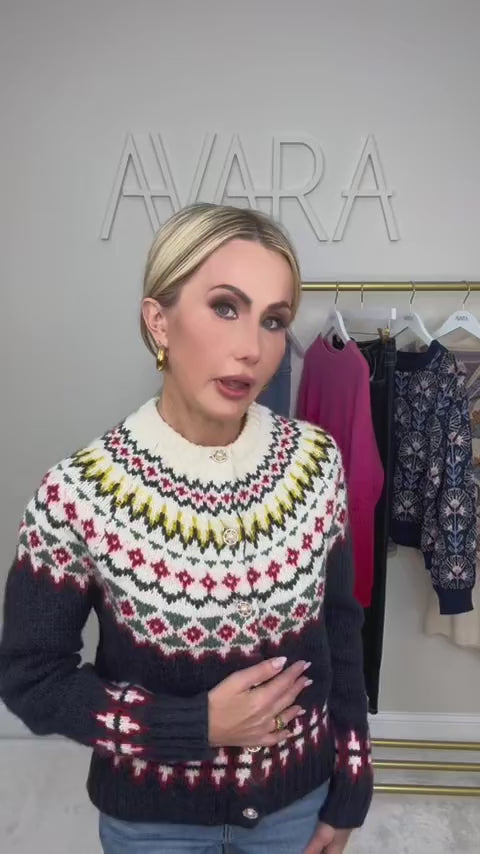 So chic! Our Aspen Cardigan in Navy is the throw-on-and-go layer you’ll love. This piece features Fair Isle details throughout, complete with a button-front closure. Pair this with denim and booties for a simple yet put-together styling. Perfect for evening plans, office days, and more to come this season.