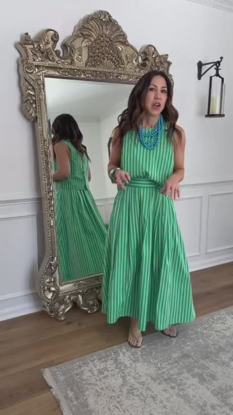 Color crush! Our Claire Top in Green will become a wear-on-repeat favorite. We love the allover multicolor striped styling on this, complete with a boxy silhouette. Style this with our Claire Skirt for a matching moment feel or pair with denim for something more casual. The perfect option for weekend trips, friendly get-togethers, and more.