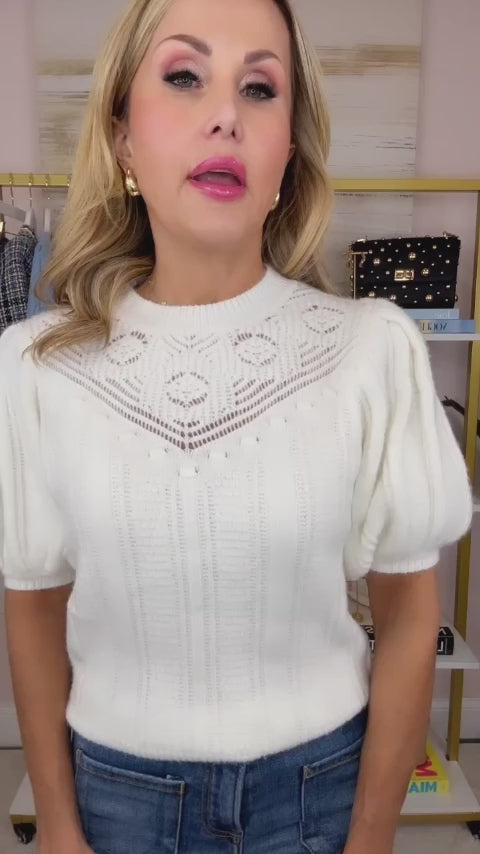Avara Exclusive! Our Coraline Sweater, available in extended sizing, is a wear-on-repeat essential you can only get at Avara. This design features a super soft knit, puff sleeves, and cutouts along the neckline that are so chic! This piece pairs easily with any of your skirts or pants. Effortless and cozy!