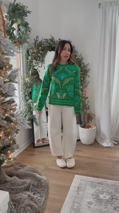 Fallon Green Printed Knit Sweater