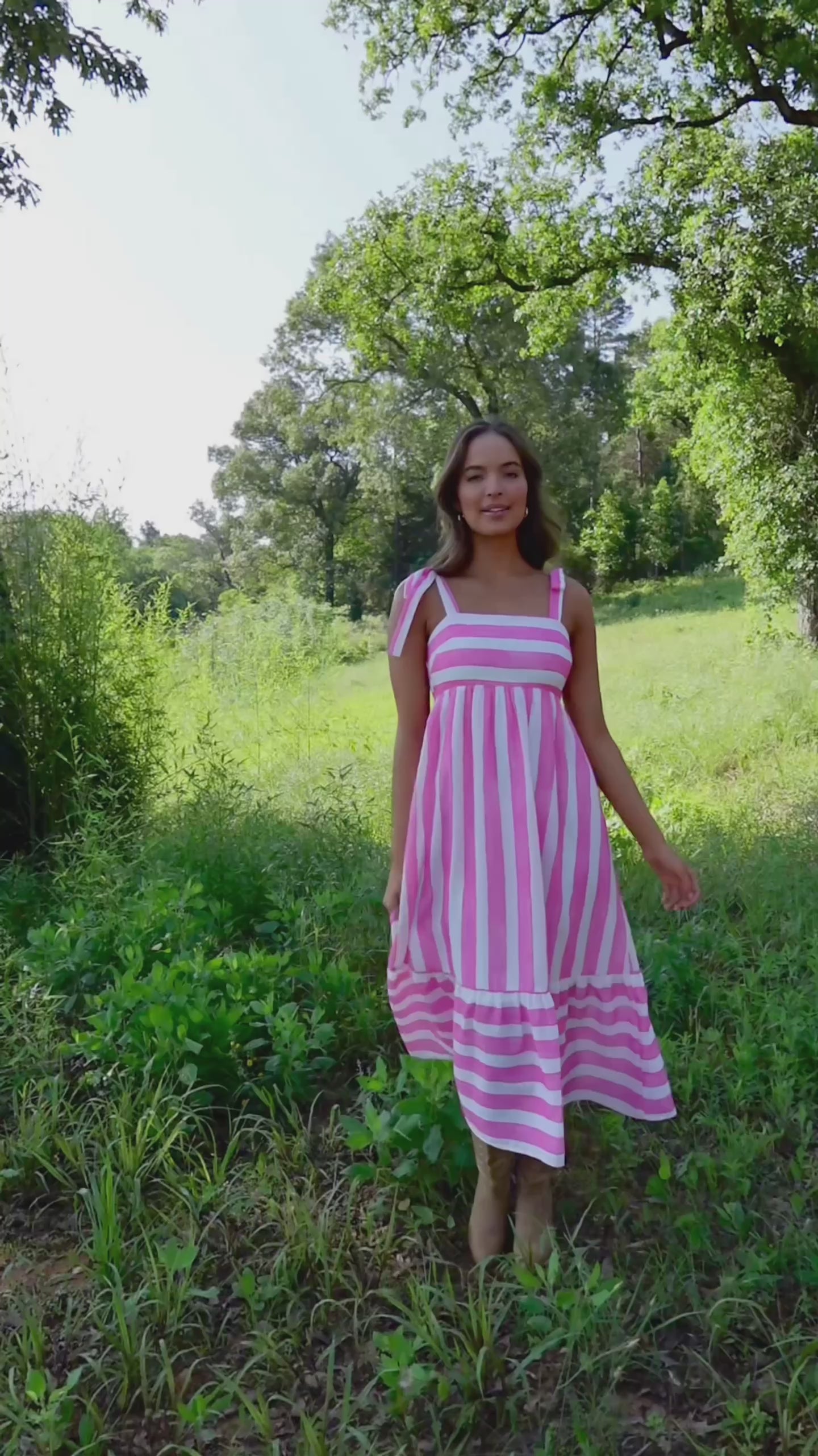 Pretty in pink! Our Gemma Dress is as cute as it is comfortable. Style this with your favorite kitten heels or sandals–an easy, breezy option for Summer celebrations, events, and more.