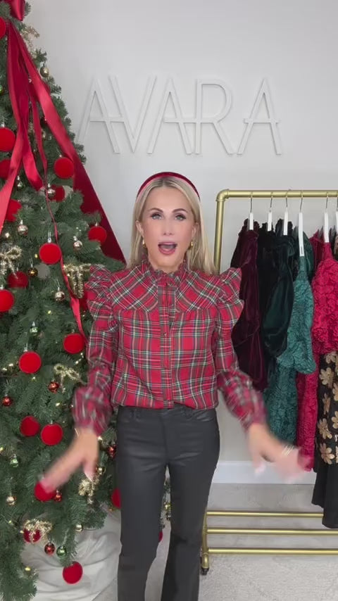 Obsessed! Our Holly Top is as cute as it is comfortable. This piece features an allover plaid print complete with flutter details at the sleeves. Style this with your favorite denim or leather pants and add booties for an elevated feel. The perfect option for family photos, date nights, and more. Styled with the Dorothy Bow in Black!