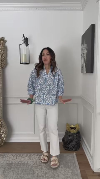 Printed perfection! Our Kemble Top in Blue is a must-have for the season ahead. We love the allover palm print on this piece, complete with a relaxed fit. Pair this with your favorite Avara denim and sandals for an easy, elevated look. Perfect for upcoming trips, weekend outings, and more.