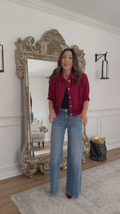 Easy elegance! Our Mackenzie Jacket will become a wear-on-repeat favorite this season. We love the allover tweed-knit fabrication on this piece, complete with puff sleeves. Style this with your favorite denim and pair with booties or loafers to finish the look. The perfect look for office parties, holiday gatherings, and more.