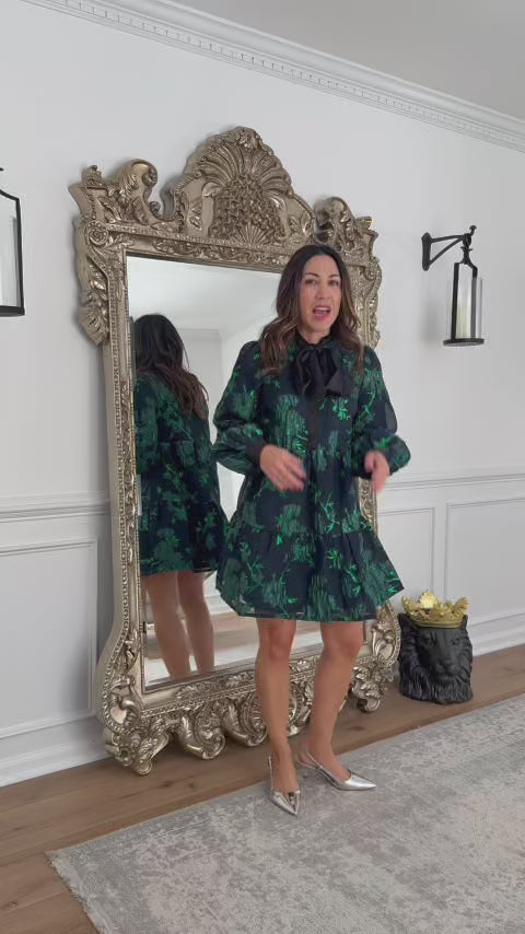 Printed perfection! Our Melissa Dress is as cute as it is comfortable. We love the allover metallic floral print on this piece, complete with a shift silhouette. Style this with your favorite kitten heels and pair with tights and simple jewelry to complete the look. An easy option for upcoming events, weekend plans, and more festive fun.