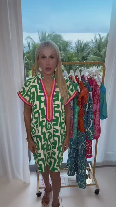 Obsessed! Our Thea Dress in Green will become a wear-on-repeat favorite. We love the allover abstract print on this, complete with a shift silhouette. Style this with neutral sandals or pair it with wedges – an easy, lightweight option for upcoming events, vacation days, and more.